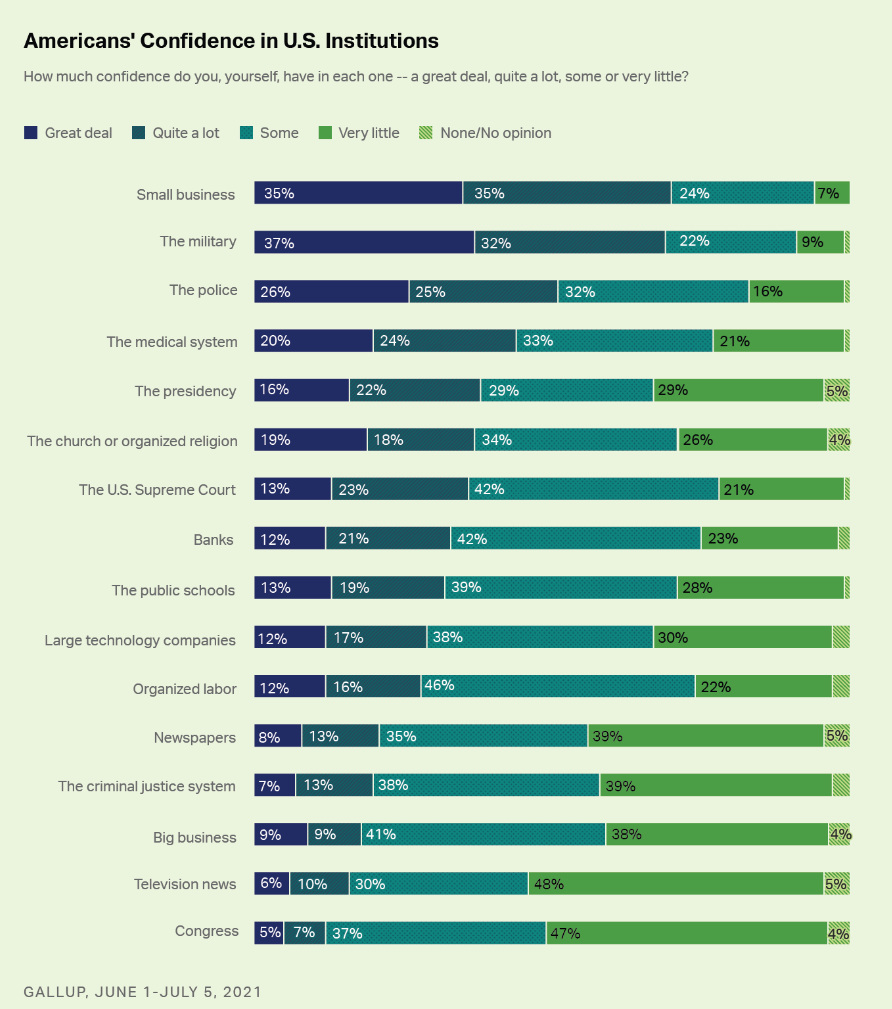 Small business and the military are the only institutions more than half the country has some confidence in.