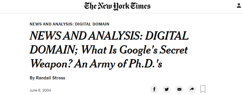 But Google also had something intangible in 2010: the highest concentration of PhDs, award-winning researchers, and credentialed academics of any major Tech company in the world.