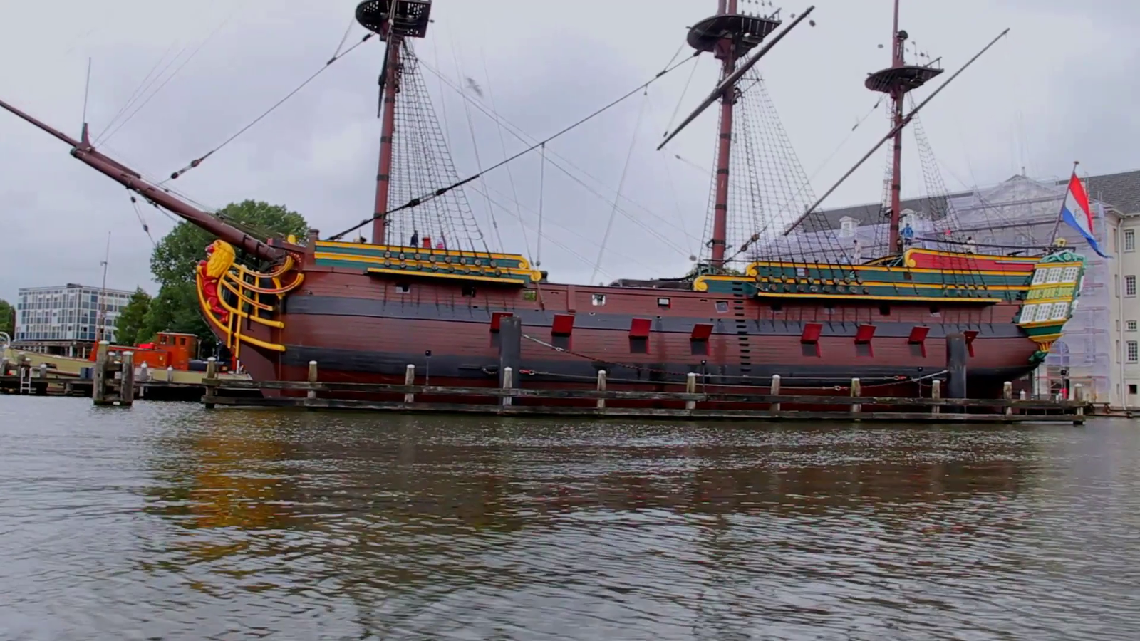 A replica 1700s trading ship, used for trading by a private corporation. The red flaps are not decorative: as in nature & Eve Online, “Red Means Dead”