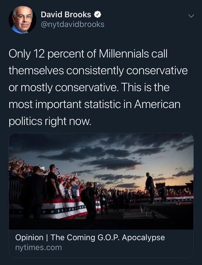 Why? I don’t know exactly, and wrestling with that would take another 5,000 words that I don’t quite feel like writing. I stared at this chart for 5mins and asked myself “why don’t you care about the y-axis today, when it used to seem so obviously important to you? When you used to identify primarily along that axis and ignore everyone talking about Right/Left?” and the immediate answer I got from my gut was: