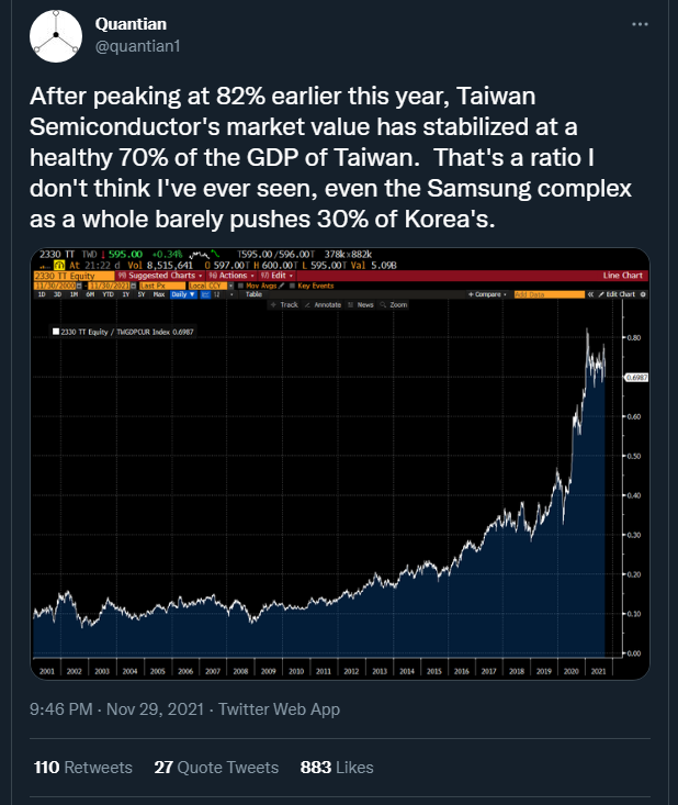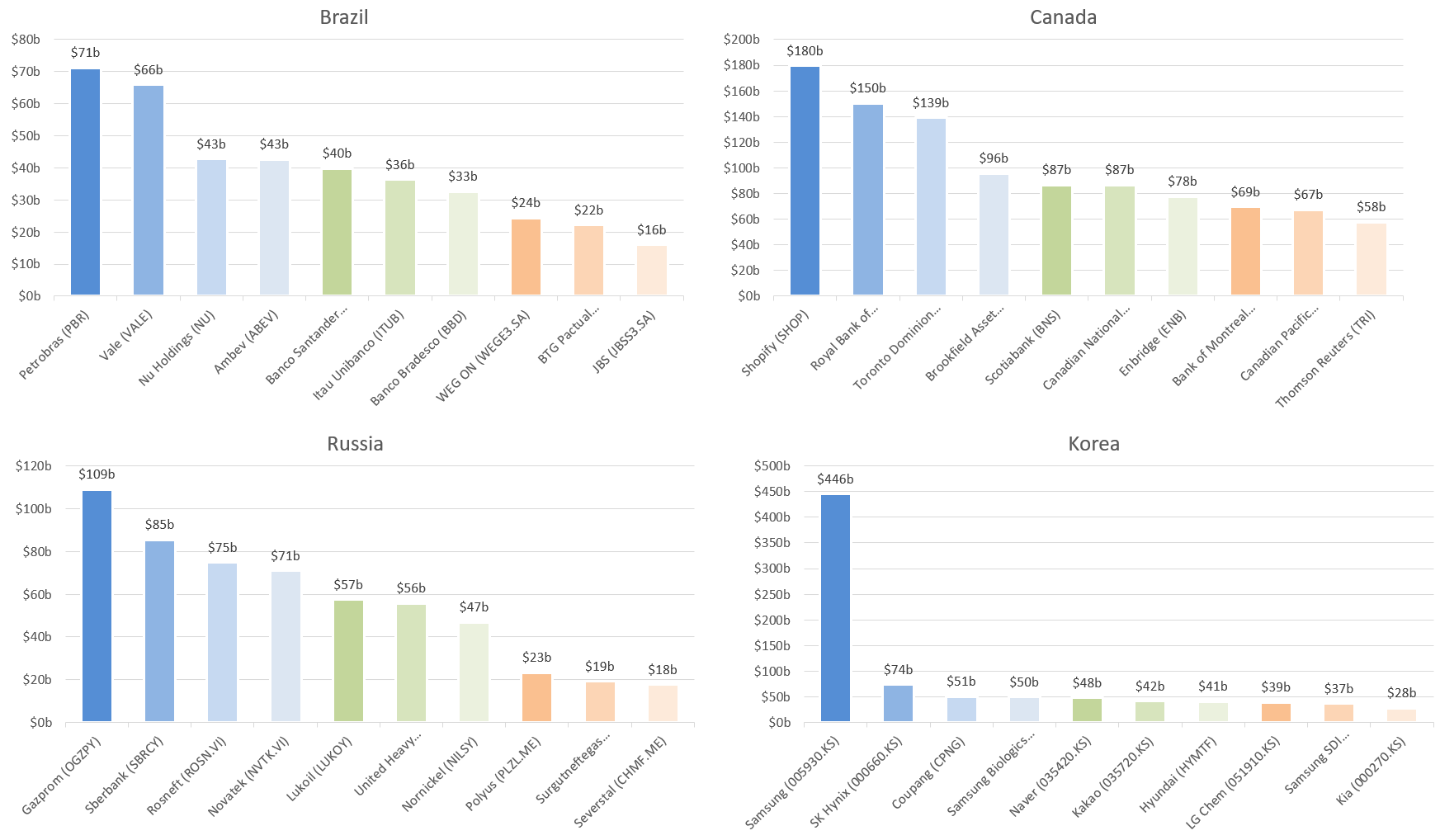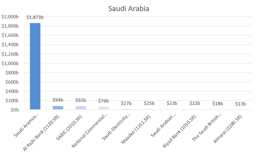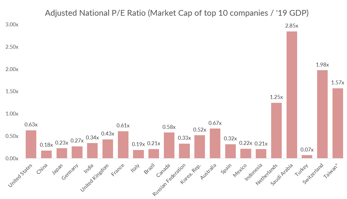 • & observe that the smaller a nation is, the more valuable its biggest companies are relative to its own GDP