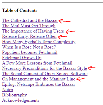 • The Cathedral and the Bazaar (Eric S. Raymond, 1997-2000, relevant sections highlighted below, and this to be read and also juxtaposed with the structure of today’s dominant Tech companies — and a curious reader might then ask why have Cathedrals proven so valuable?)