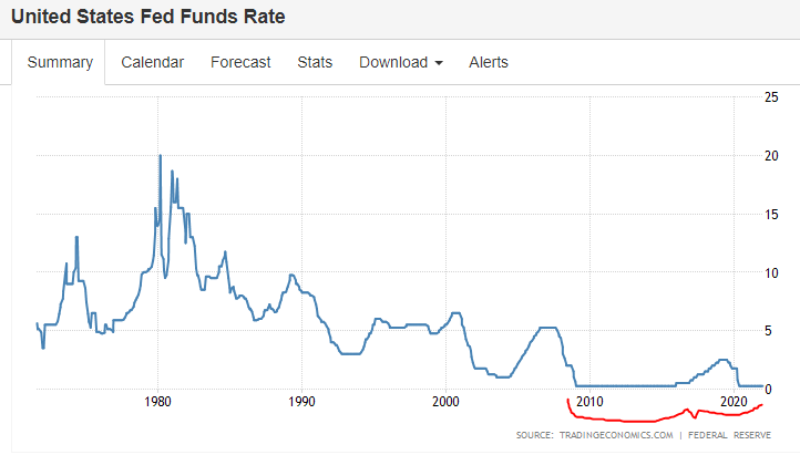 But if your lens is that the Fed is master of the national economy, then you must somehow reconcile the problem of easy money and low growth: The rates have been kept at zero since the Great Financial Crisis (even negative in some nations). And yet the actual economic growth — GDP growth rate above — fell ~2% short of what we experienced for 25 years, and stayed there from the GFC through to the Corona-crisis, all while many prices have soared (assets, college, healthcare, housing).