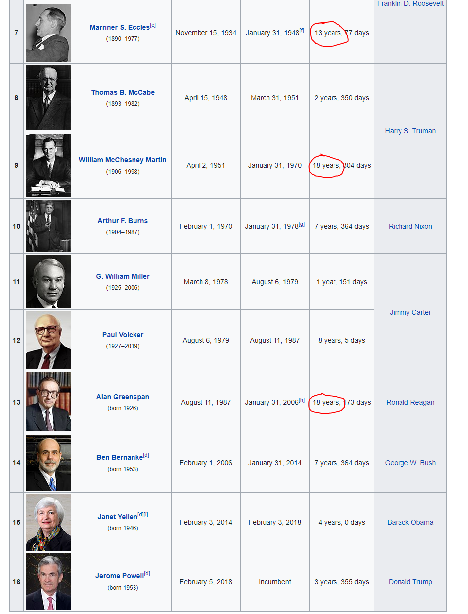 [3] Consider the length of time some members on this list served as Chairman of the Federal Reserve: