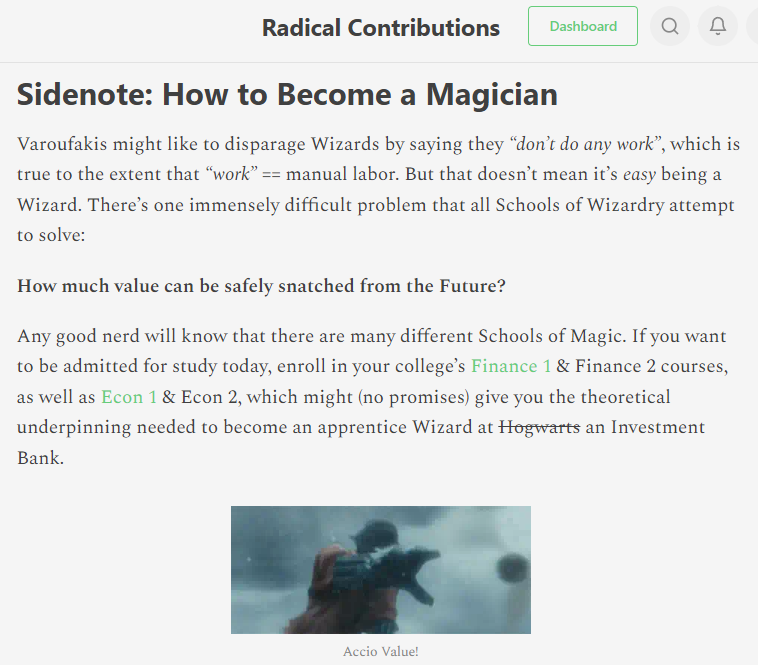 This level of skill is not taught many places because, as you might imagine, it’s ripe for abuse and tends to spark intense populist outrage. If your neighbor tried to do this for his personal account, he’d be arrested. Listen to Sam Bankman-Fried explain how new crypto tokens create value for an example of said arrest (ctrl-f for “ponzi” in that link & ask why FTX depositors were not made whole). Also most people, even journeyman wizards, lack the necessary skill to pull this off.