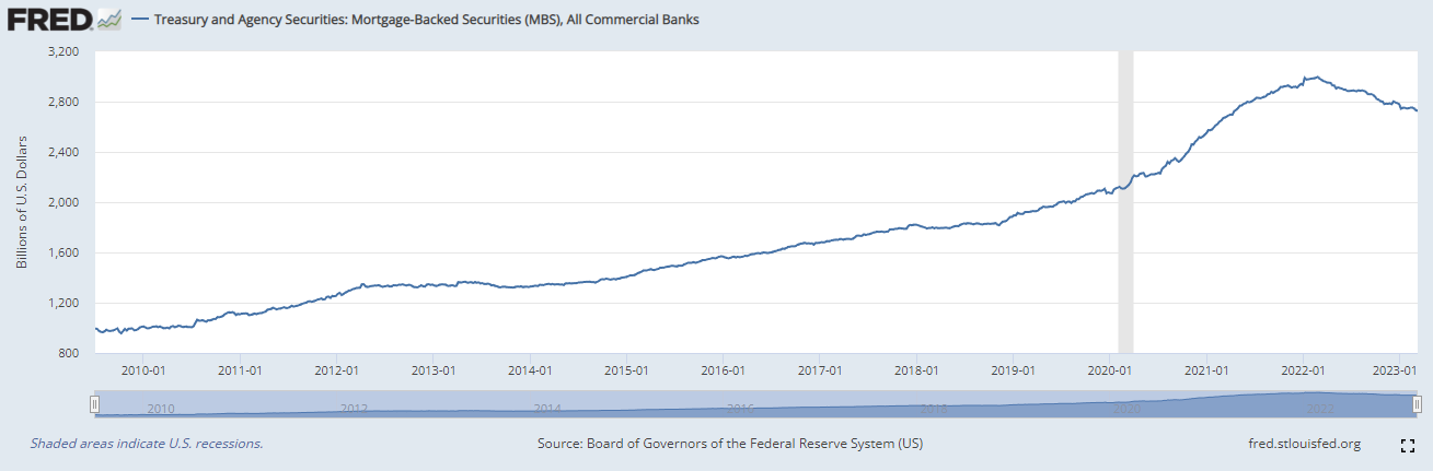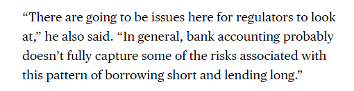 I focus on Mortgage Backed Securities because their name conjures demons in the dark and the multi-trillion-dollar scale of these long-duration government-securitized assets is so terrifying. But any bank that owns bonds paying them less-than-4.5% and also owes depositors their money back whenever they ask for it…is in a rather exciting position.