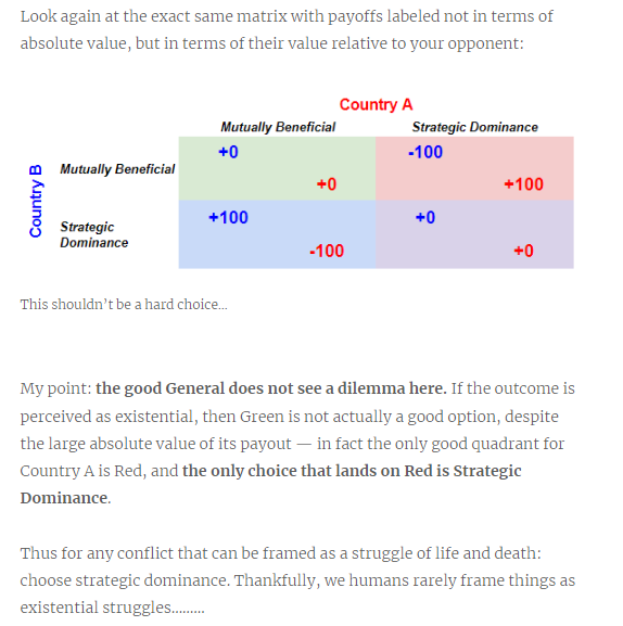 Translation: ”when in an existential situation, default to choosing Strategic Dominance”