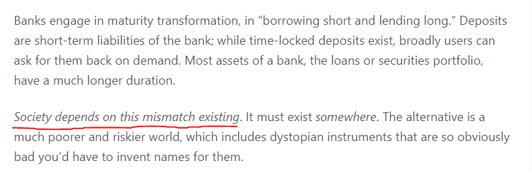 In my case, I have some personal views on our magical banking system that influenced our decision making. If you’ve read enough of my writing, they won’t be surprising to you. Net net, they sum to the idea that banking collapses are a near-certainty in adverse financial situations and that navigating them responsibly requires adopting a zero-sum mindset. I try not to talk too explicitly here, because eventually you end up talking policy and I would never do that to my dear readers. But if you want the relevant snippets, these ones are close enough: