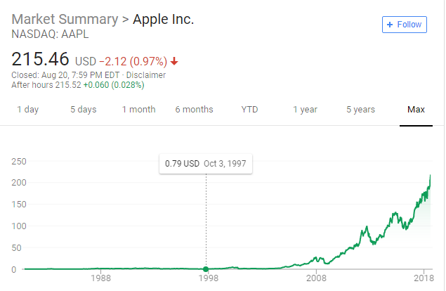 Most people don’t understand compound growth at all, and most humans have terrible intuitions about exponents and catastrophes. A dollar today is worth more than a dollar tomorrow — because you can put it to work. People can understand that. What they can’t appreciate intuitively is the growth that comes when the additional dollar they earn gets put to work too. And the thing about compound growth, exponential growth, is that it often has a long-tail before meaningful returns are realized. You earn more money when you have more money you can put to work, and building that base takes time. See: the most valuable companies in the world (as of 2018)